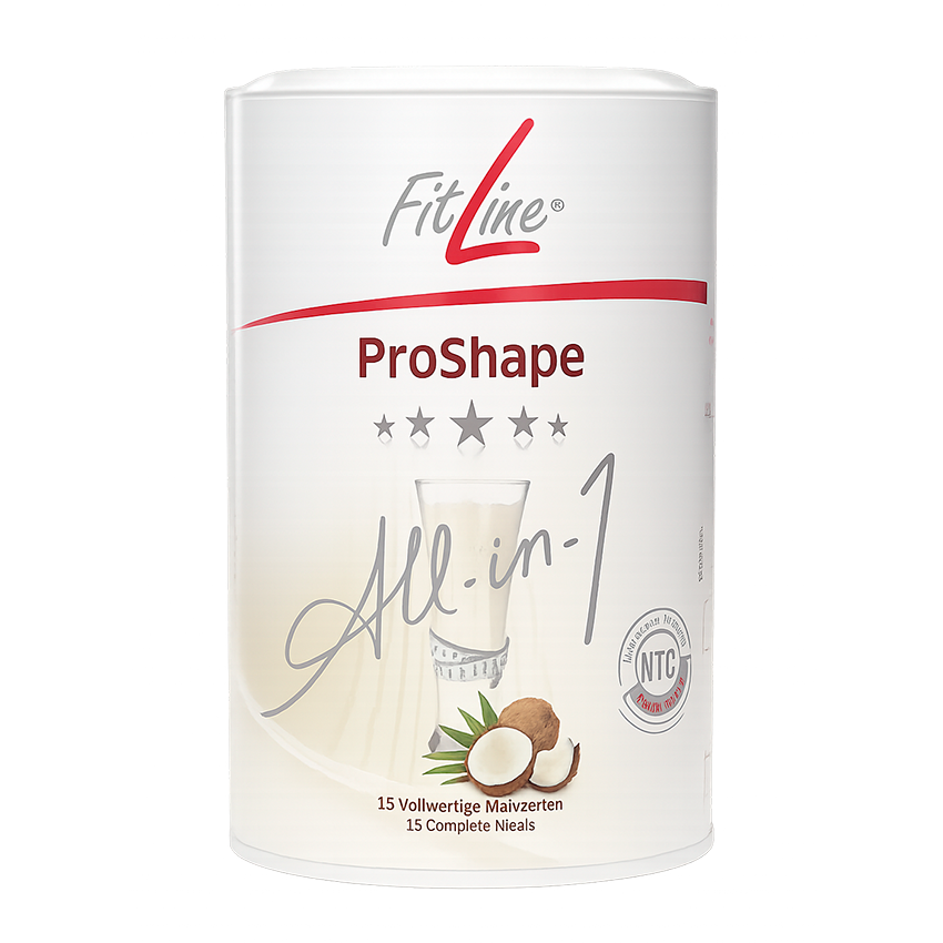 FitLine ProShape All-in-1 Coconut es un complemento alimenticio en polvo diseñado para apoyar el control de peso y la nutrición diaria. Su fórmula combina proteínas de alta calidad, vitaminas, minerales, fibra y extractos vegetales, ofreciendo un apoyo integral al metabolismo, saciedad y energía. Con su delicioso sabor a coco y fácil preparación, es ideal como batido nutritivo para desayunos o meriendas dentro de un estilo de vida saludable.